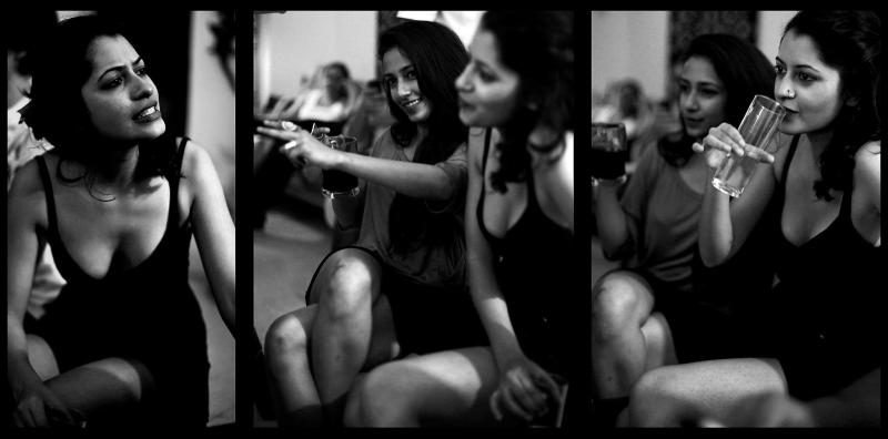 Two friends enjoy an evening of tall tales and drinks at a Bangalore house party.