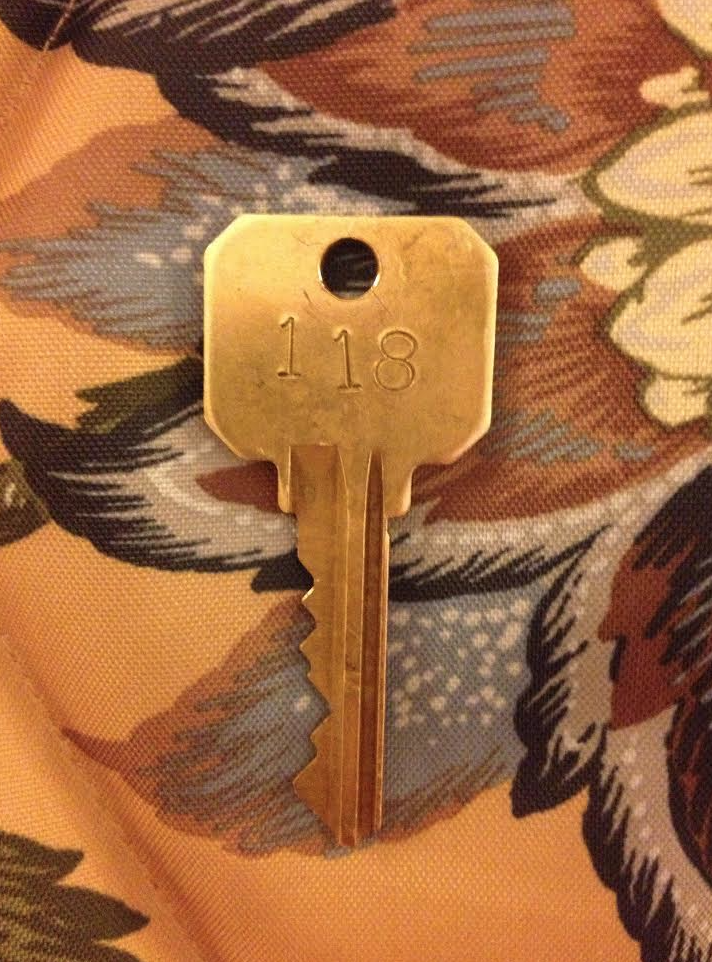When I checked in to this motel, this relic of the past, I was given a brass key to my room, and I walked around back to my bright peach-colored door: Room 118. Inside was a space that hadn’t changed for decades. Shiny lacquered wood headboards. Marilyn or Sinatra might have slept under the floral bedspread, if they had opted to stay in a motor hotel.