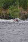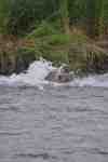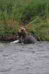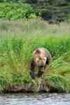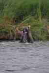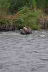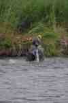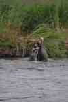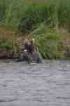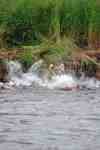 As winter’s remains fade, giving way to the verdant colors of spring, brown bears – long tired of foraging on grass, last summer’s berries that survived under the cover of snow, remnants of winter kill, and any other form of nourishment their hibernation-withered frames can find – make their way to the rivers, awaiting that cerulean procession of sockeye, the lynchpin of their diet that will sustain them through winter. It is not until the sockeye have undergone a striking conversion, turning a brilliant red with a green head, and have paired up and spread out to shallower water to spawn, that they become easier targets for bears. While some bears snorkel the river, walking with their heads beneath the river’s surface, others prefer the blitzing approach where they charge into the spawning fish or jump from the bank in hopes of trapping a sockeye under their paws or catching one in their mouths.