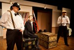 Between August and September, a local community theater in Boise, Idaho obtained a permanent space after 31 years of productions. The 39 Steps, a comedy adapted by Patrick Barlow from the novel by John Buchan, was to be the theater’s first production in its new space as a kick-off to their 32nd season. The 39 Steps is a delightful comedy in which four actors take on the roles of every character portrayed in the classic Alfred Hitchcock film by the same name. Stage Coach Theater was proud to put on this wonderful production directed by Curtis Ransom, starring John Buffington, Anastasia Van Allen, Aimee Nell Smith, and Jordan Peterson. Below are a few stills from the production curtsy of Stage Coach Theater (http://stagecoachtheatre.com/) and Paul Budge (paul@budgephotography.com).