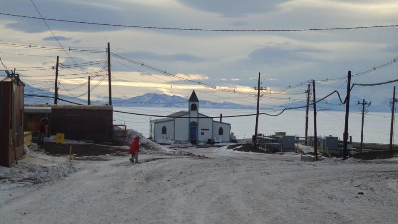 October 2011 | A view unchanged for 30 years. Old military buildings and dangling wires show the effects of human interaction with the frozen continent. The Chapel of the Snows shows a promise of civility and obedience by the residents.